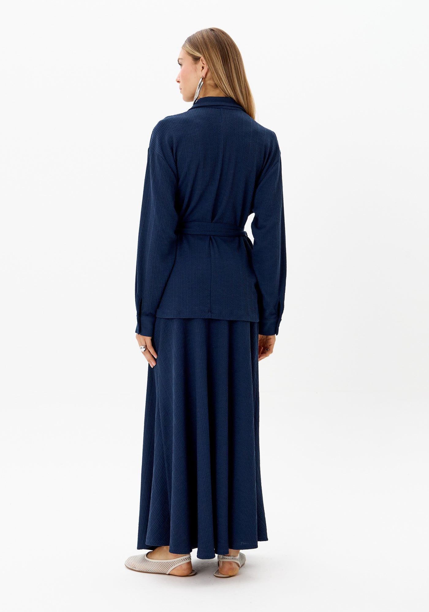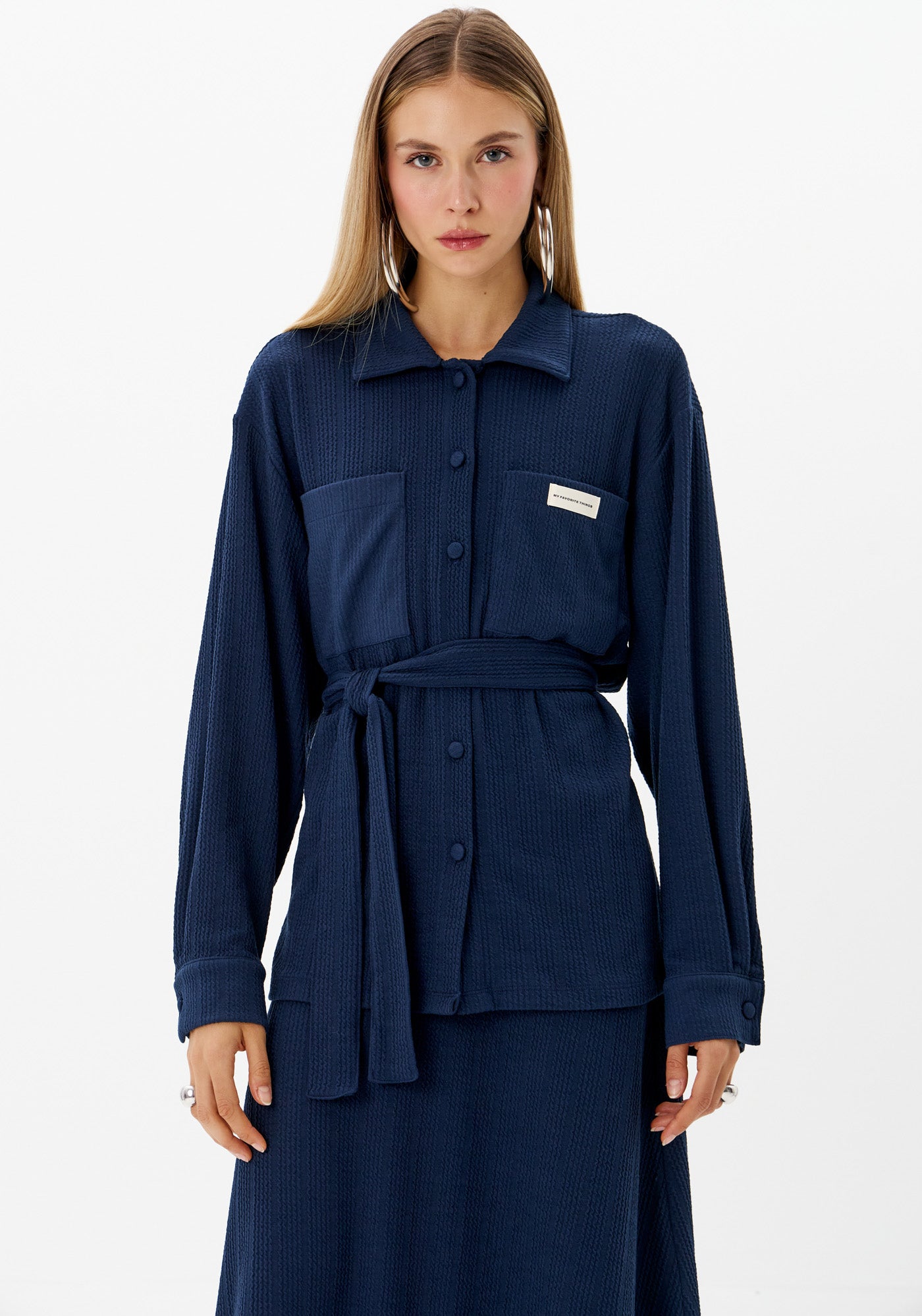 A camisa alongada combina conforto e versatilidade. Com bolsos utilitários e fechamento frontal por botões forrados, ela traz estilo sem esforço. Acompanha faixa no mesmo tecido, ideal para ajustar a silhueta ou usar solta, em um look mais descomplicado