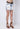 MINI SAIA DESFIADA COM DETALHES DOURADOS. NÃO POSSUI CINTO.