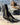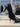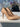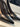 Scarpin em couro cinético, com detalhe de metal na parte da frente .