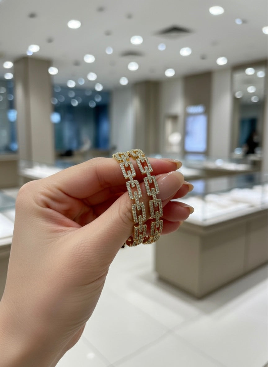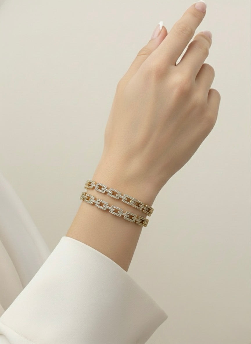 Produzido como semijoia importada, é folheado a ouro, garantindo brilho intenso e acabamento sofisticado. Os elos trazem um design atual e marcante, enquanto o detalhe em zircônia adiciona um toque de delicadeza e charme na medida certa 💛