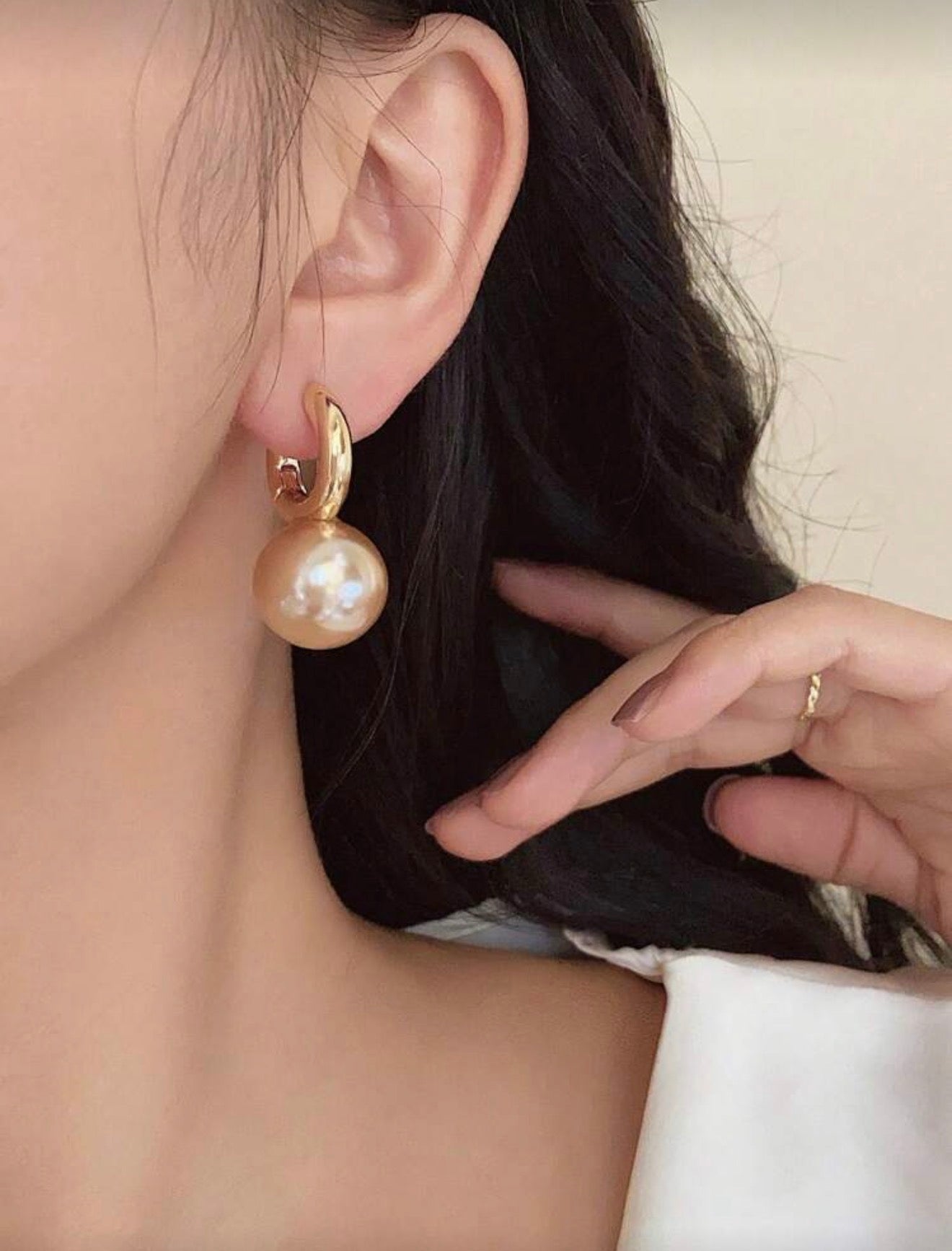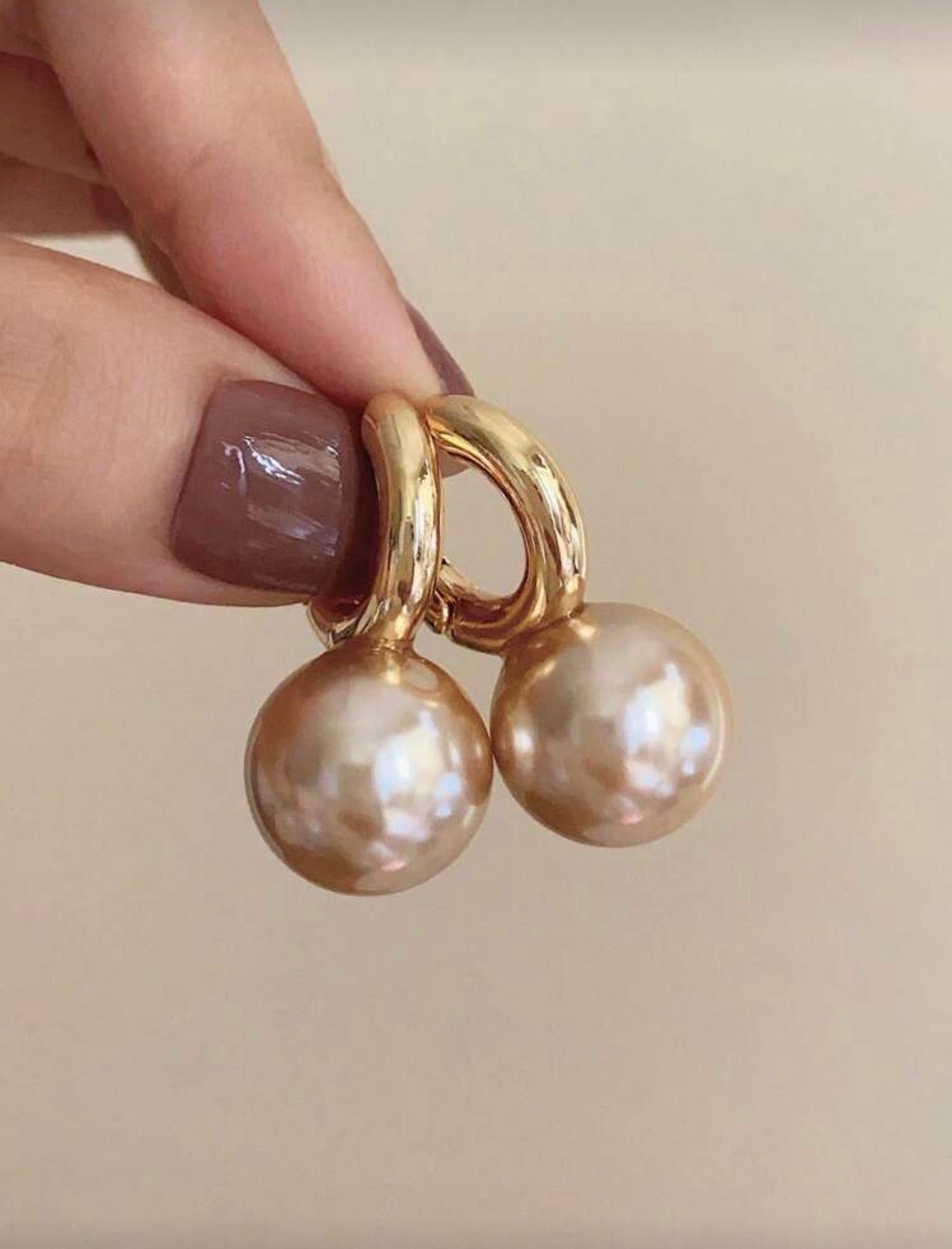 BIJUTERIA FINA BRINCO METAL DOURADO C/PEROLA Champanhe, uma peça super versátil para compor looks em qualquer ocasião .