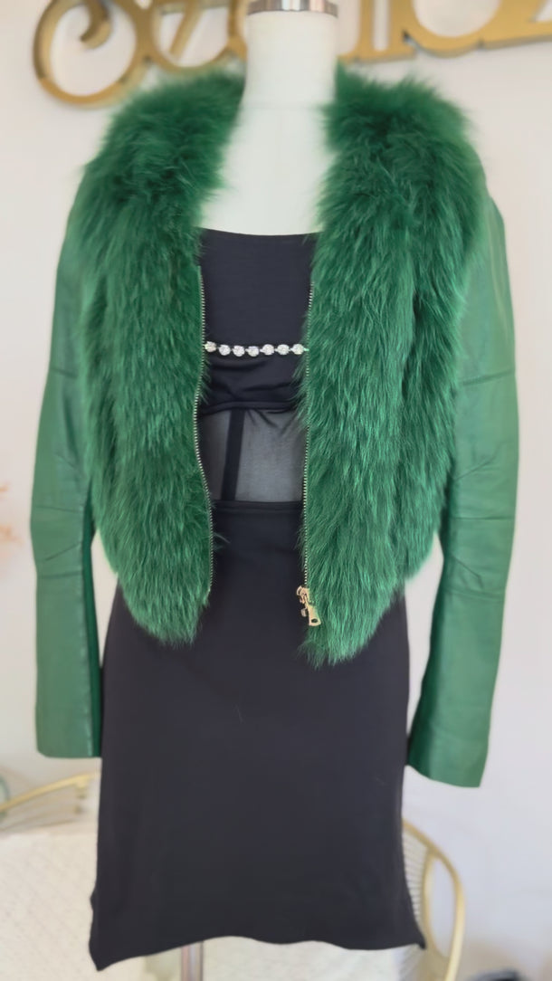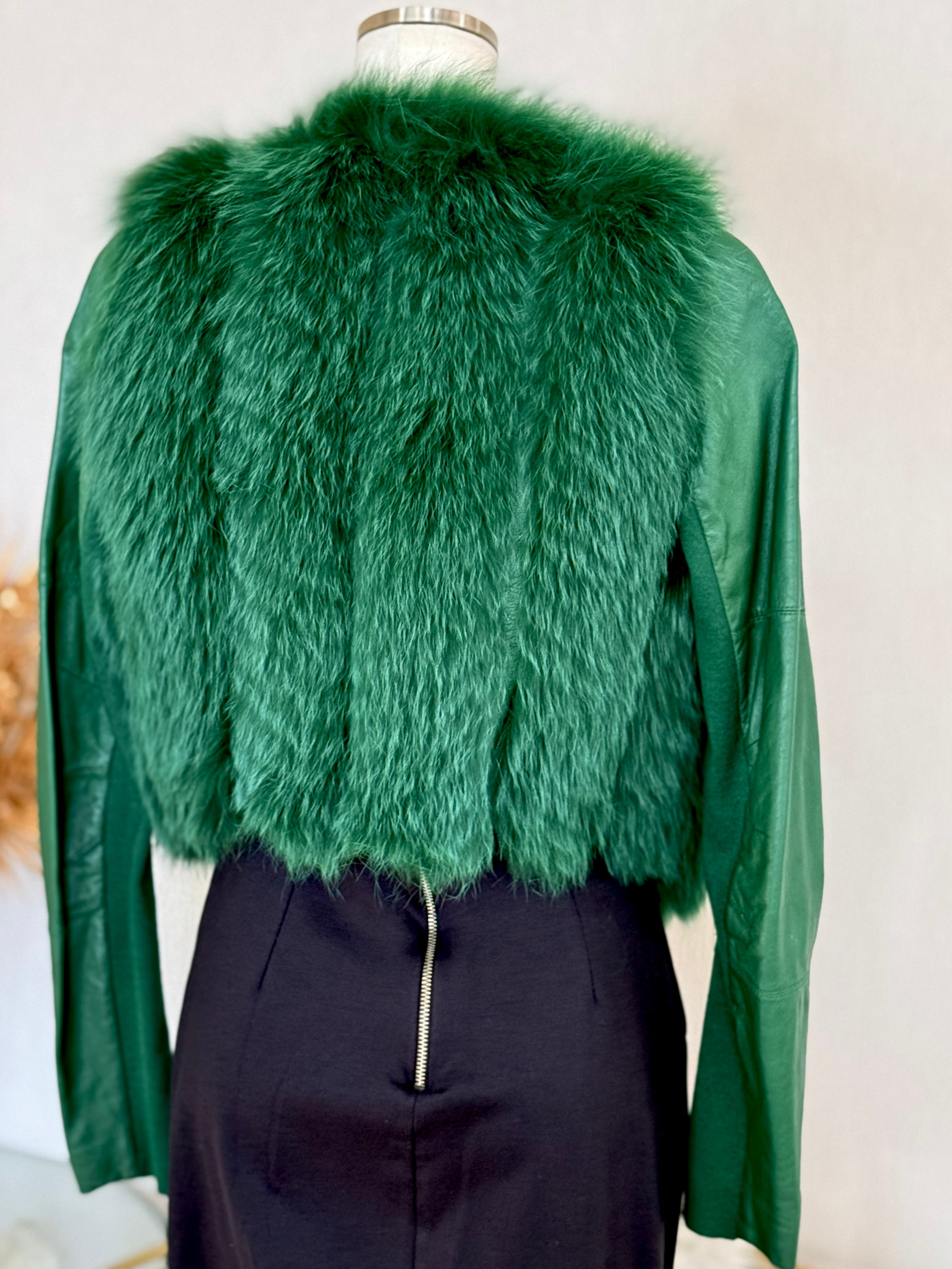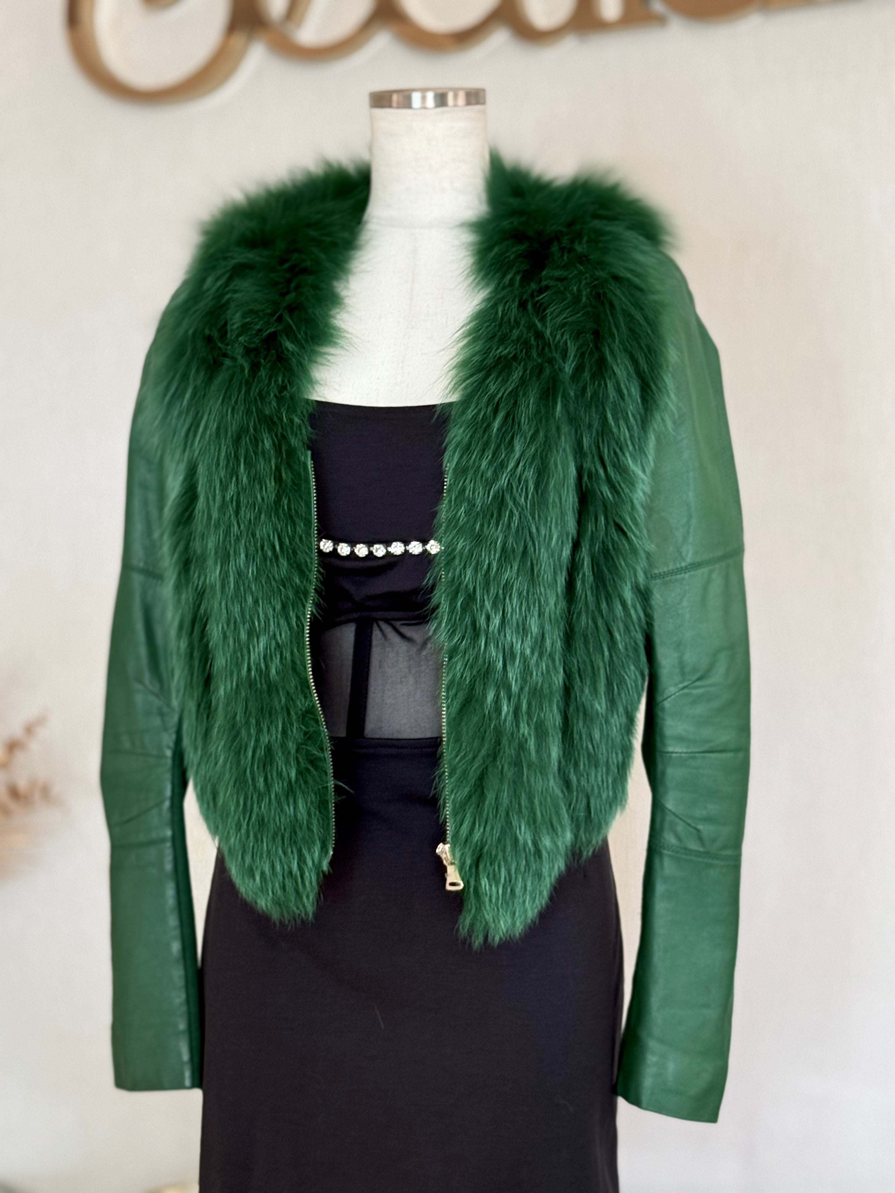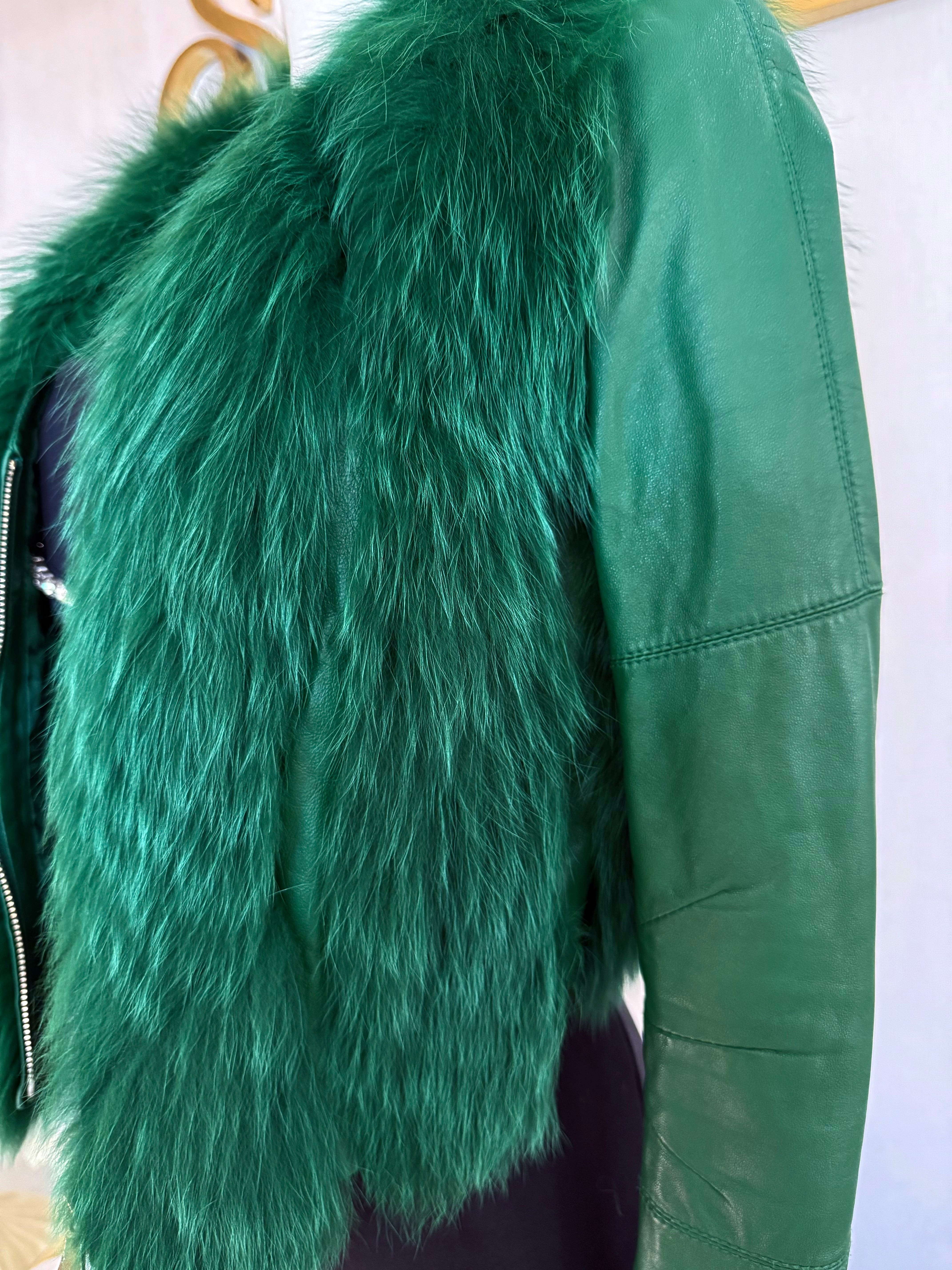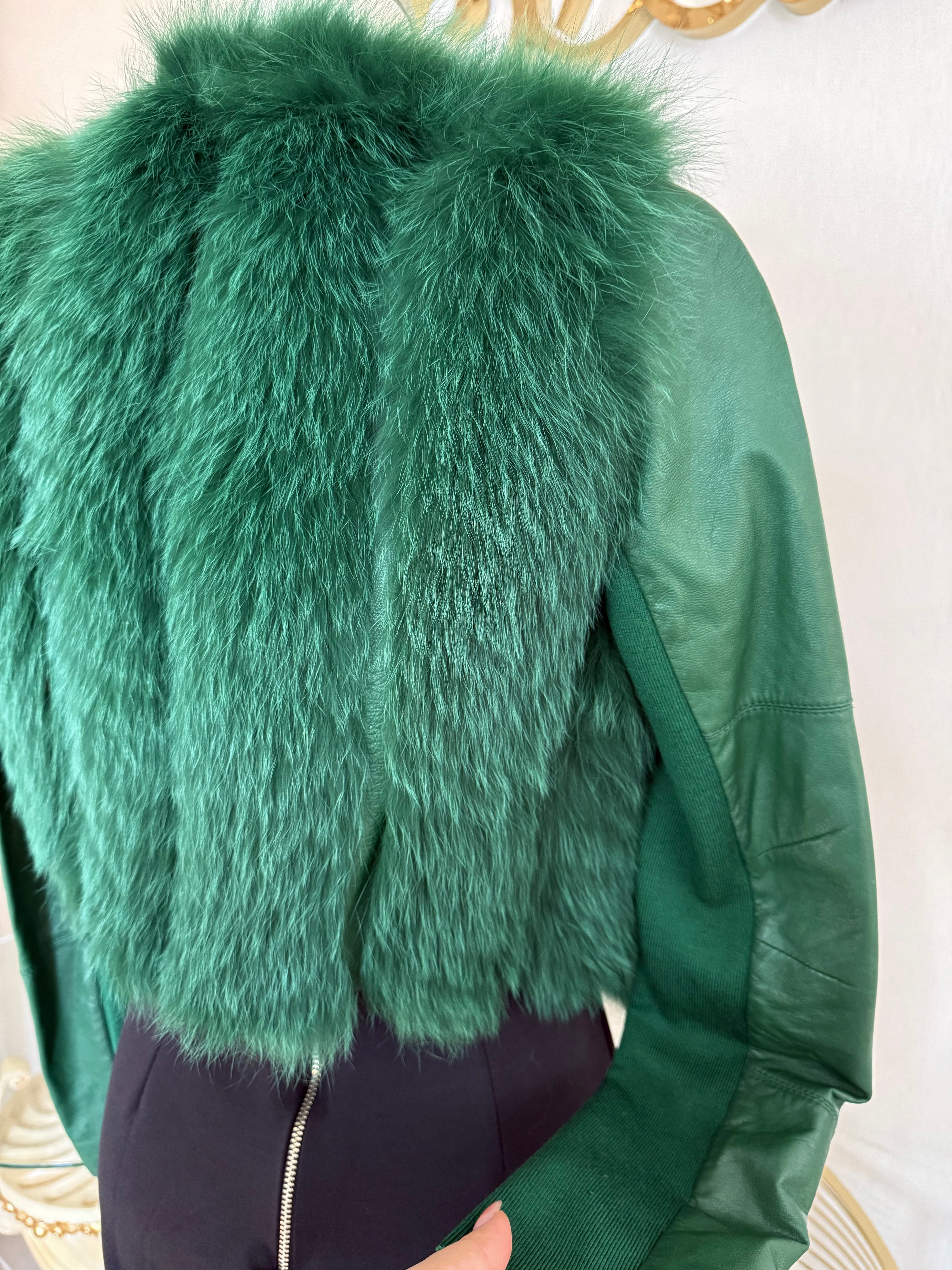 Casaco de couro e pelos , a parte interna do braço é em tecido maleável trazendo um conforto maior.