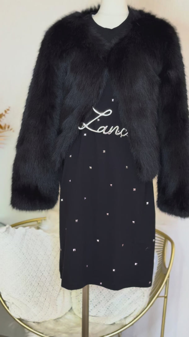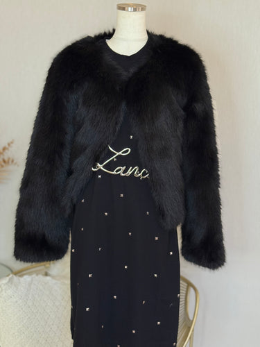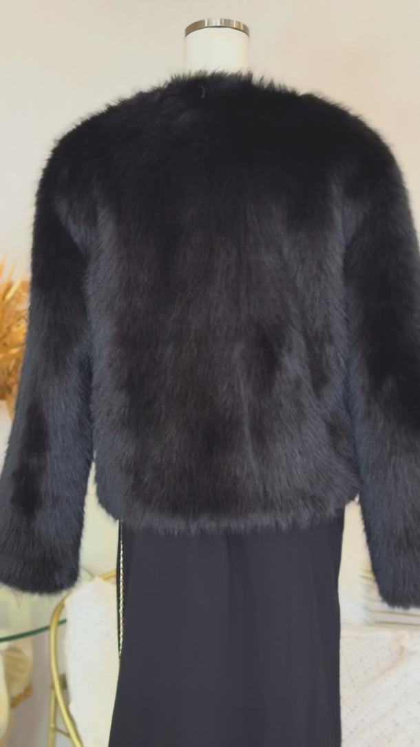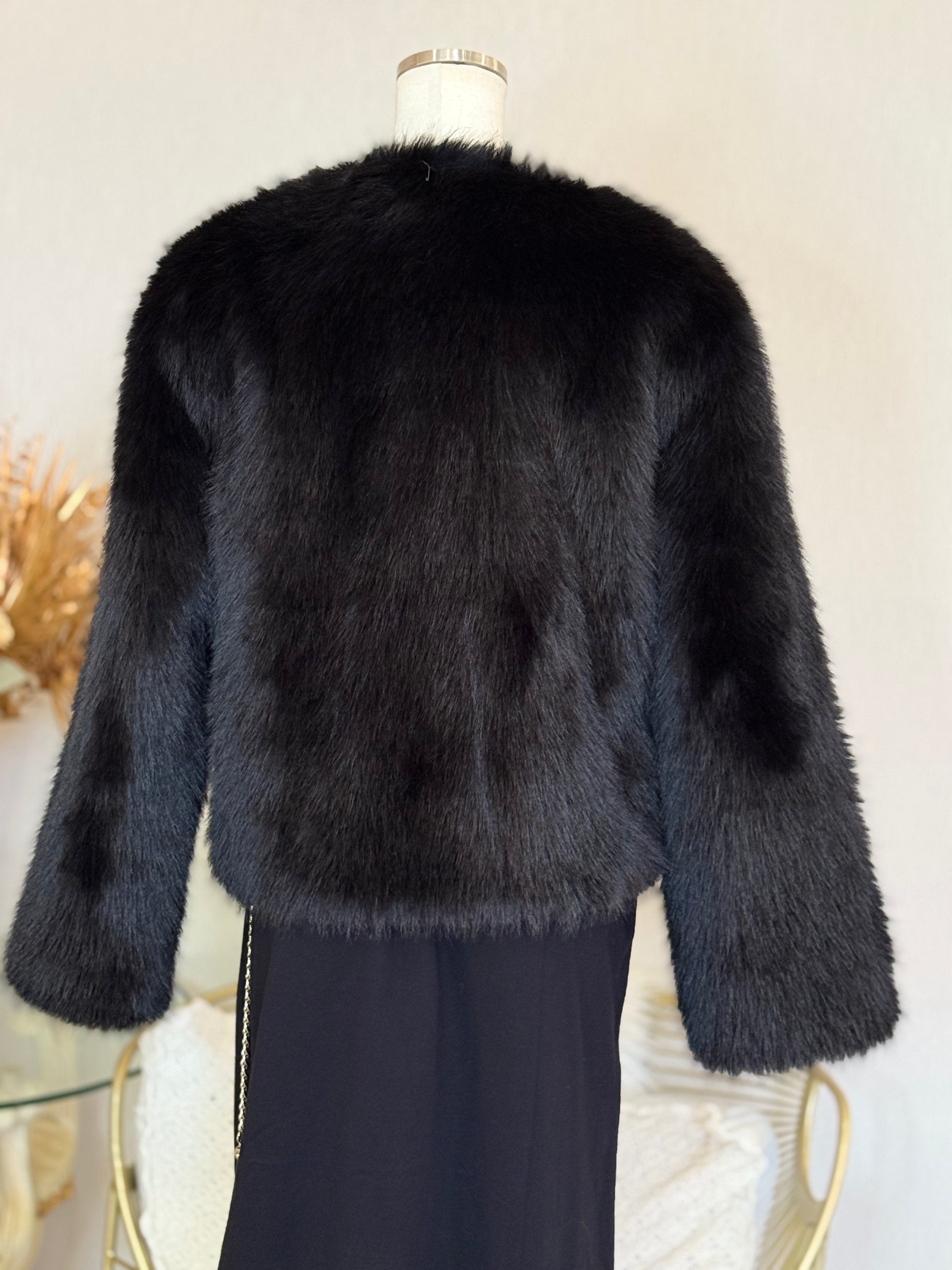Casaco de pelo sintético, forrado com detalhe fecho na parte frontal .