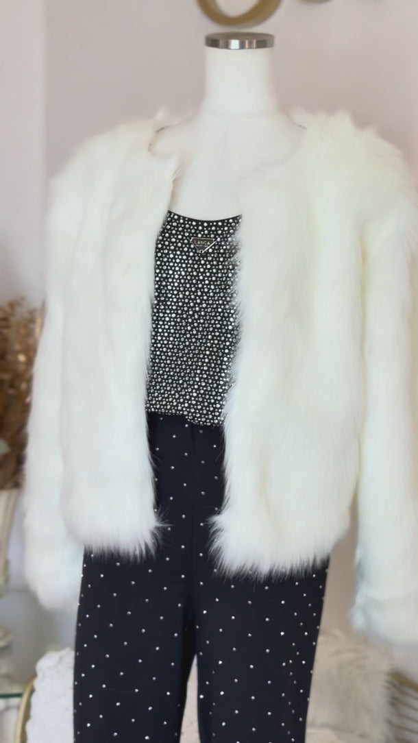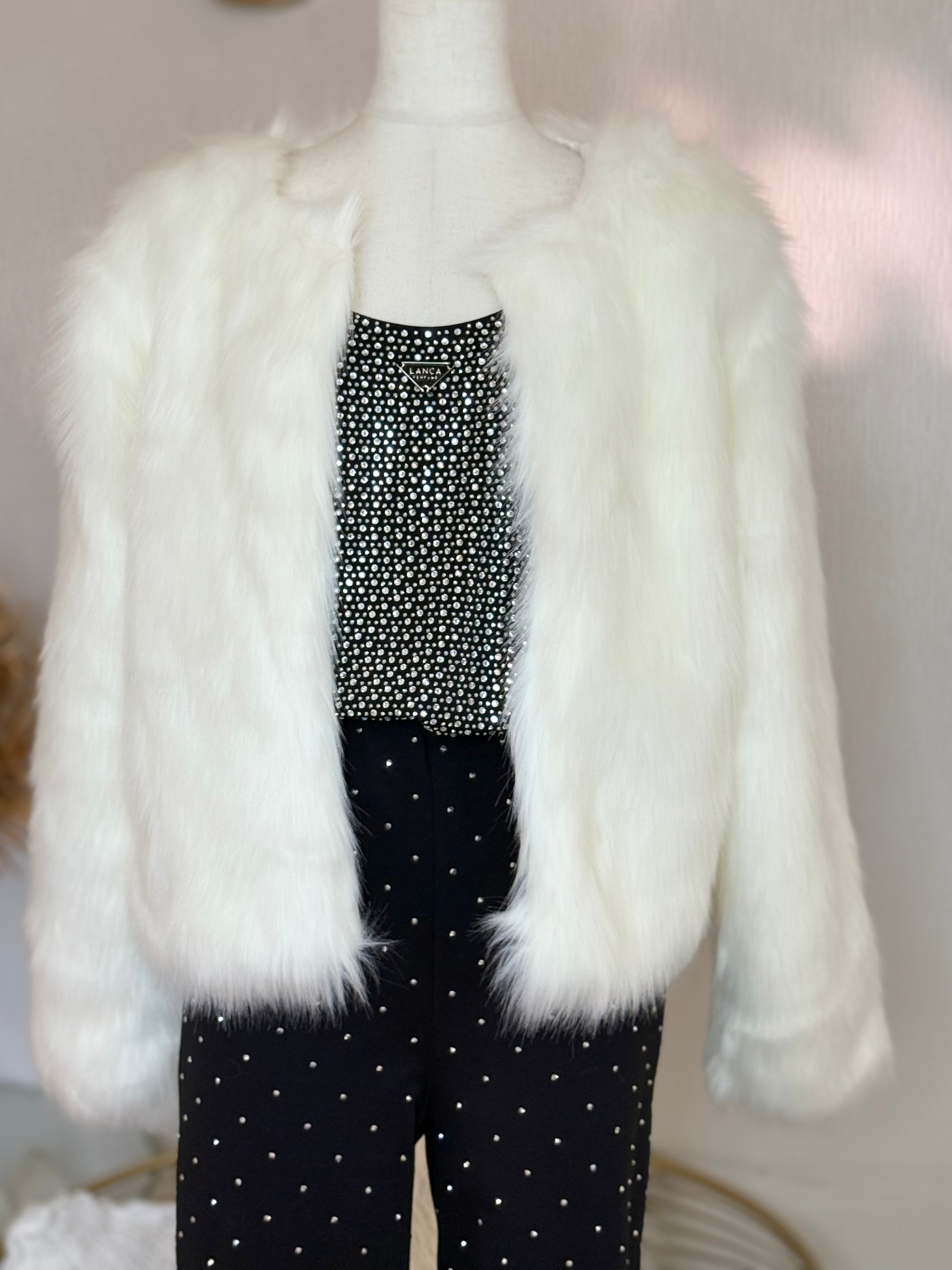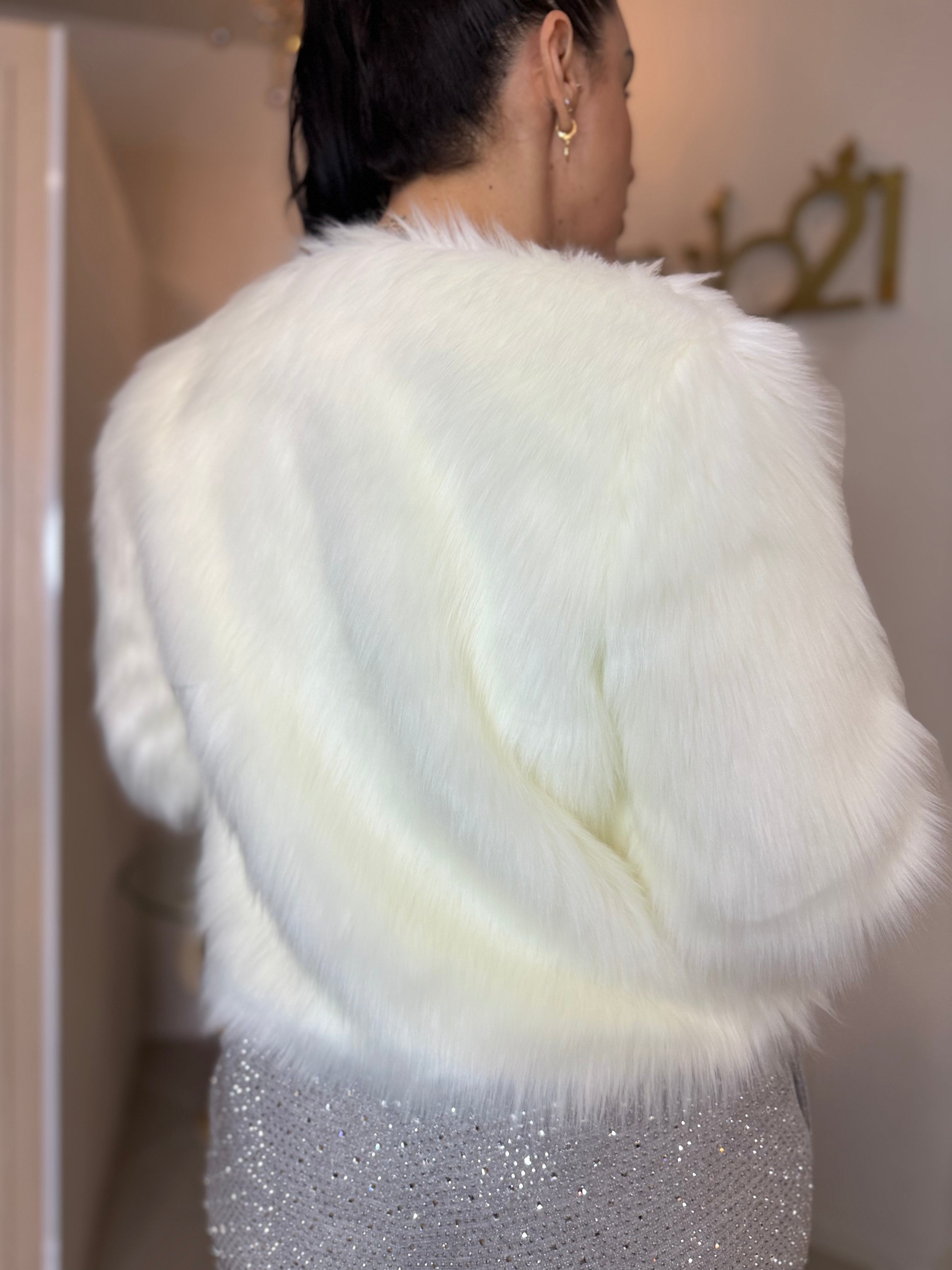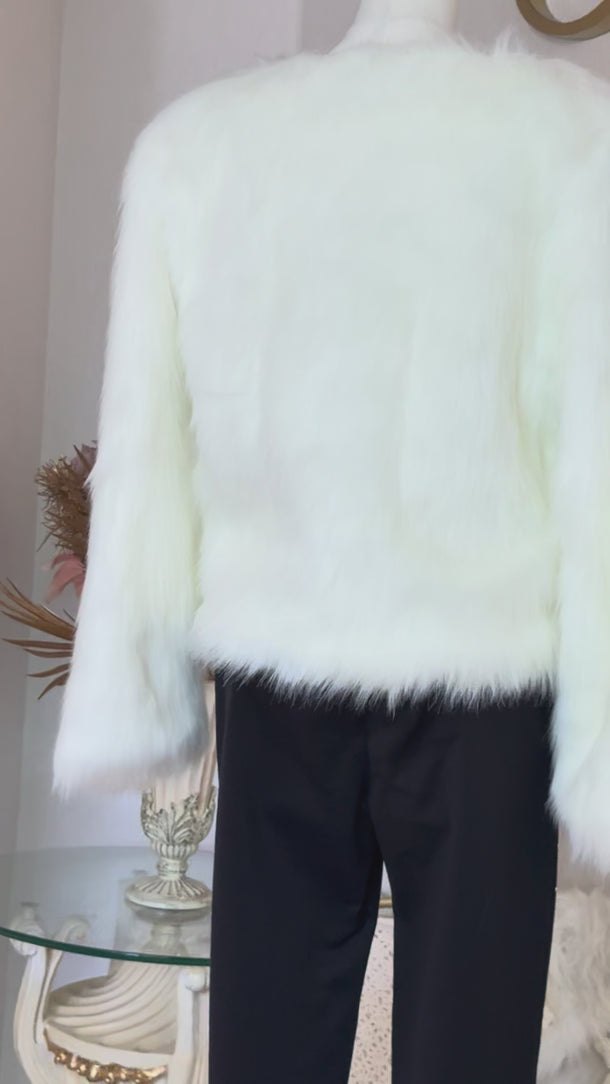 Casaco de pele sintético , forrado com fecho na parte frontal