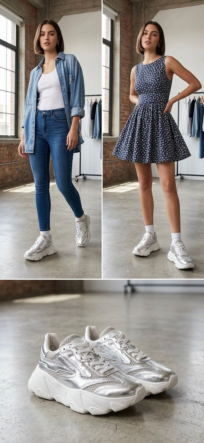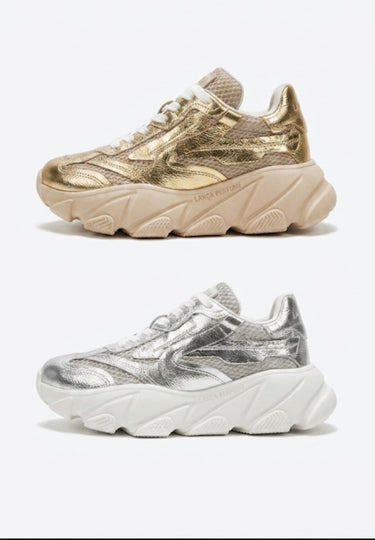 Os chunky sneakers metálicos da Lança Perfume são a combinação perfeita entre conforto e estilo. Super versáteis e na tendência, eles elevam qualquer look e ainda te dão aquele extra na altura com muito conforto. Perfeitos para o dia a dia ou para dar um toque fashion em qualquer ocasião!